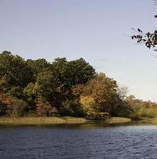 The eastern edge of the park lies along the headwaters of the Carmans River, one of